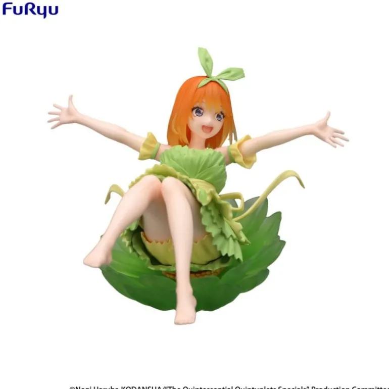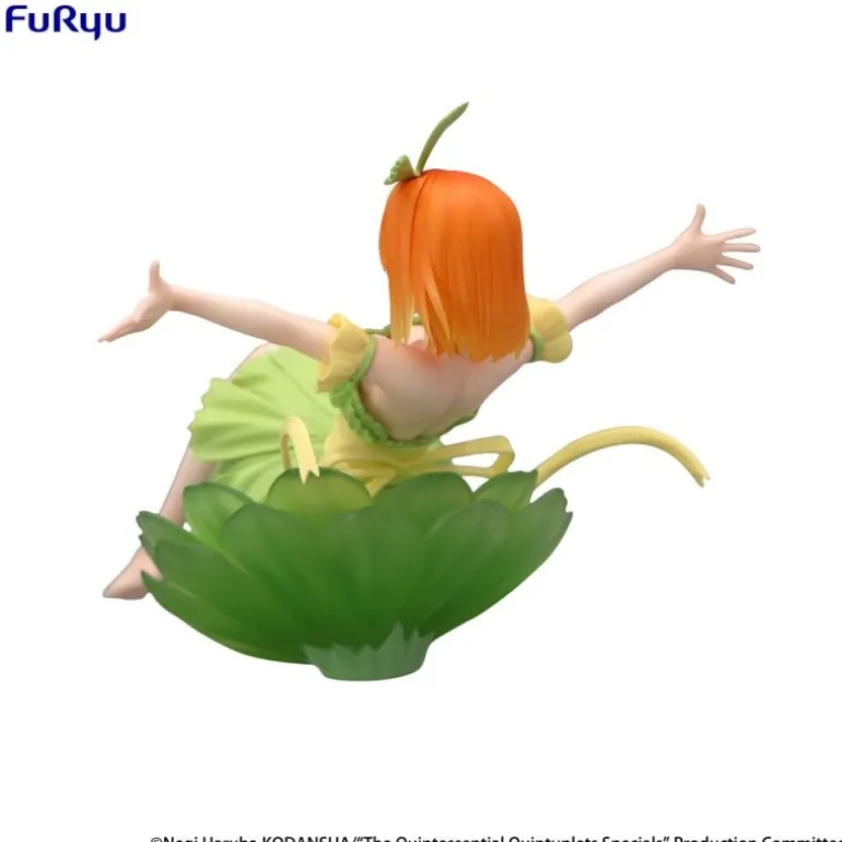 Descubre la encantadora estatua de PVC de Nakano Yotsuba de la serie «The Quintessential Quintuplets Specials«. Esta figura de 11 cm de altura captura a la perfección la personalidad alegre y vivaz de Yotsuba. Fabricada por Furyu, la estatua presenta un diseño detallado, con Yotsuba sentada en una base verde que simula hojas, mientras que su vestido verde con cintas amarillas complementa su vivaz cabello naranja y su expresión optimista.