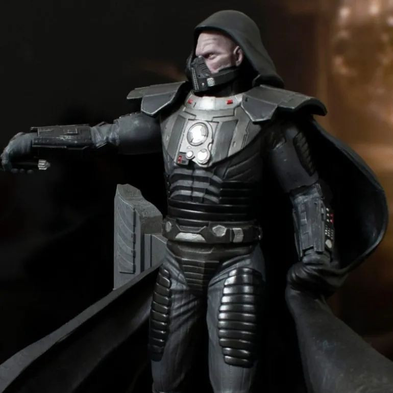 Con un acabado detallado y una capa desmontable, esta pieza es perfecta para cualquier coleccionista. Sus medidas de 24,8 x 32,7 x 32,2 cm y un peso de 1,36 kg aseguran que sea una adición destacada en cualquier colección. Presentada en una caja con ventana a color, es ideal para exhibirse con todo su esplendor. Fabricada por Gentle Giant y distribuida exclusivamente por heo en Europa, esta estatua es un artículo exclusivo que destaca por su calidad y diseño fiel al videojuego Star Wars: The Old Republic.