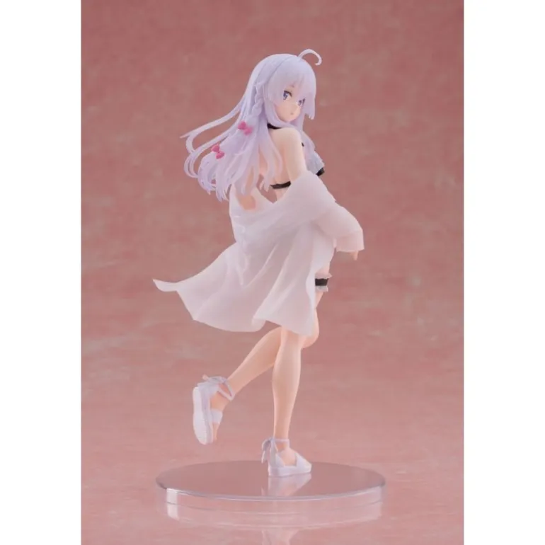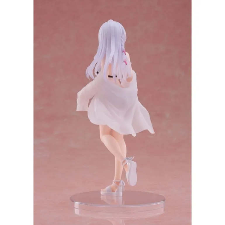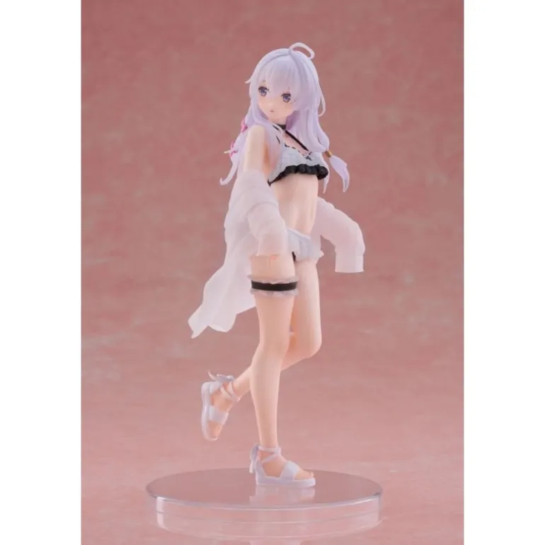 Descubre la encantadora figura de Elaina del anime ‘Wandering Witch: The Journey of Elaina’, en su versión Swimsuit. Esta estatua de PVC mide 18 cm y refleja con detalle la belleza y el estilo único de Elaina. Observa su cabello lila con sutiles ondas que fluyen mientras su vestido ligero se mueve elegantemente al viento. Con una expresión curiosa y delicada, sus ojos grandes y brillantes resaltan su personalidad aventurera. La figura está meticulosamente diseñada con ropa de baño detallada, complementada con un chal transparente que aporta un toque de sofisticación.