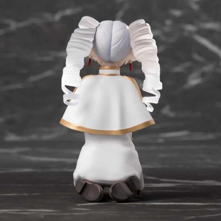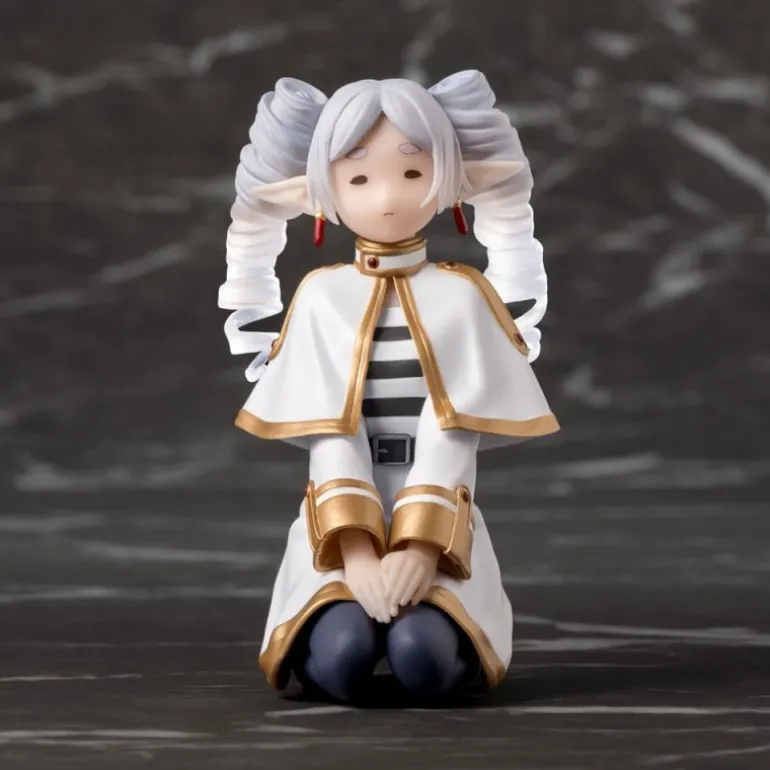 Esta estatua de Frieren de la popular serie «Beyond Journey’s End» es un artículo de colección imprescindible. Con una altura de aproximadamente 10 cm, está fabricada en PVC, asegurando durabilidad y detalle. Destaca por su exclusivo diseño Clear Ver. que añade un toque único. La figura muestra a Frieren con su característico cabello con rizos, vestido con un elegante traje blanco y dorado, y sentada de manera serena. Incluye una base para su fácil exhibición.