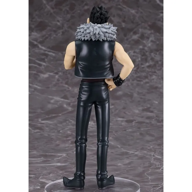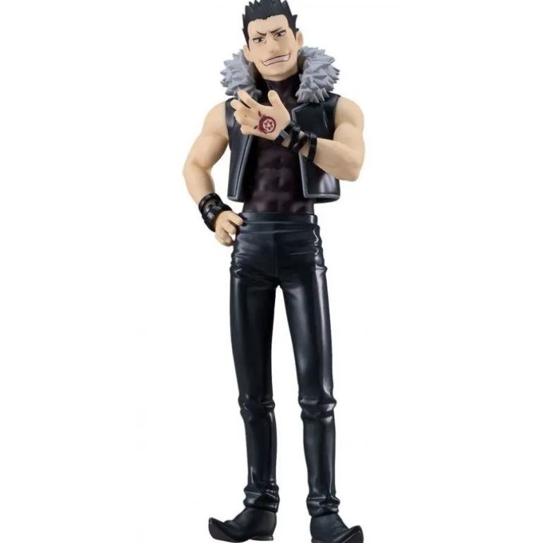 La estatua presenta a Greed con su característica chaqueta negra abierta y pantalones ajustados, destacando sus musculosos brazos y el símbolo distintivo en su mano. Detalles como el collar compuesto por puntas plateadas y su expresión desafiante hacen de esta figura un verdadero tesoro para cualquier coleccionista.