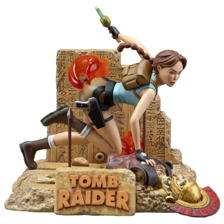 Perfecta para fanáticos de los videojuegos clásicos y coleccionistas de estatuillas, esta pieza es un tributo a la legendaria saga de Tomb Raider.