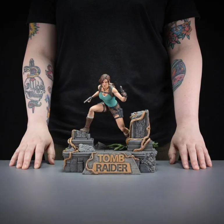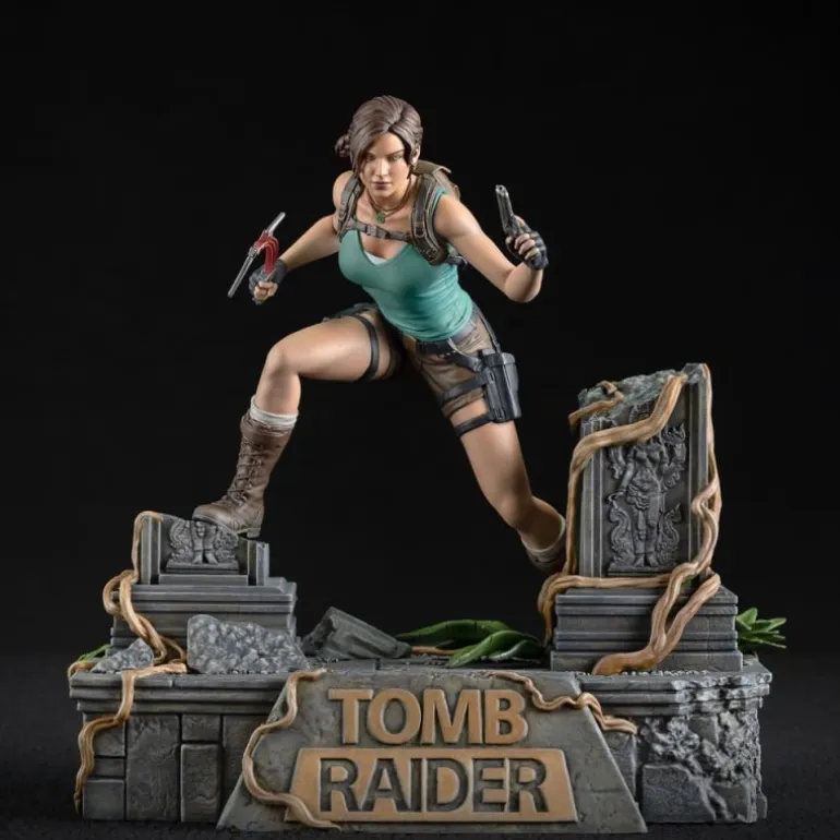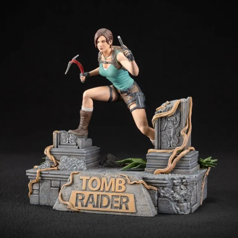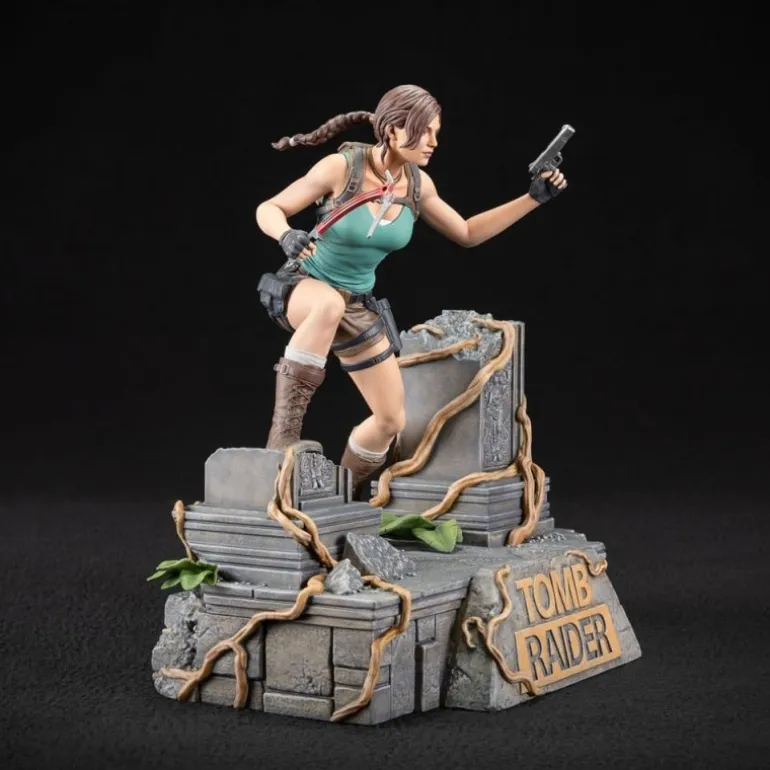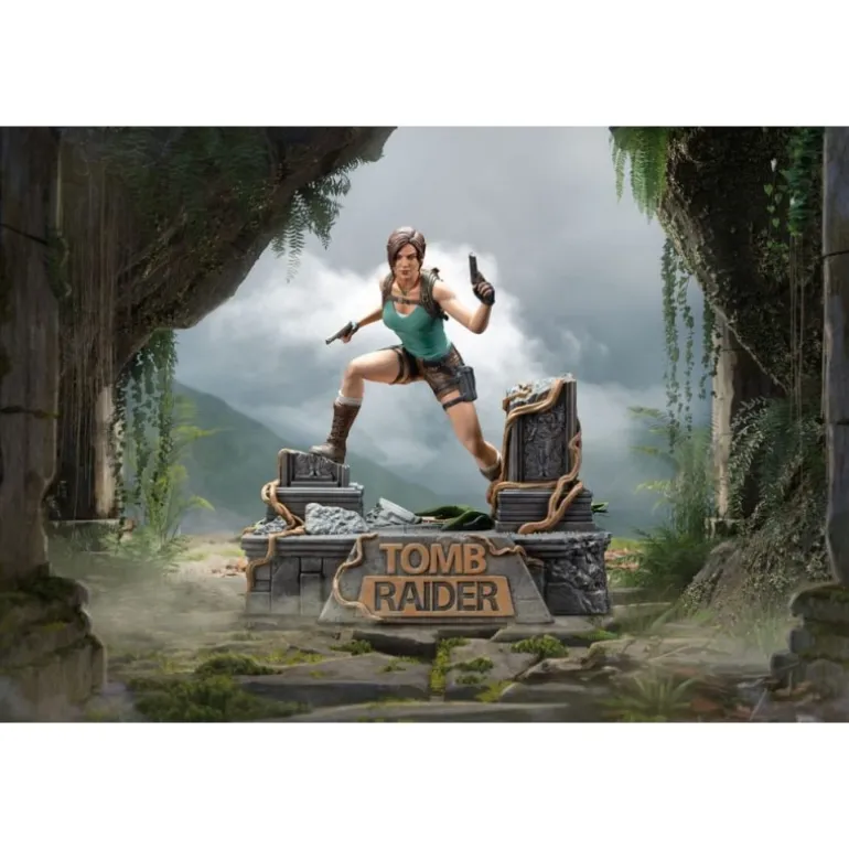 Sumérgete en el mundo de Tomb Raider con esta impresionante estatua de Lara Croft de 24 cm, fabricada en PVC por Dark Horse. Esta detallada figura captura a Lara en una pose dinámica, preparada para la aventura, con sus icónicas pistolas en mano y vestida con su clásico top verde y shorts marrones. La base se asemeja a un antiguo templo en ruinas, con detalles de enredaderas y motivos arquitectónicos que completan la ambientación. La estatua viene en una caja con ventana, ideal para coleccionistas que deseen exhibirla sin sacarla de su empaque original.