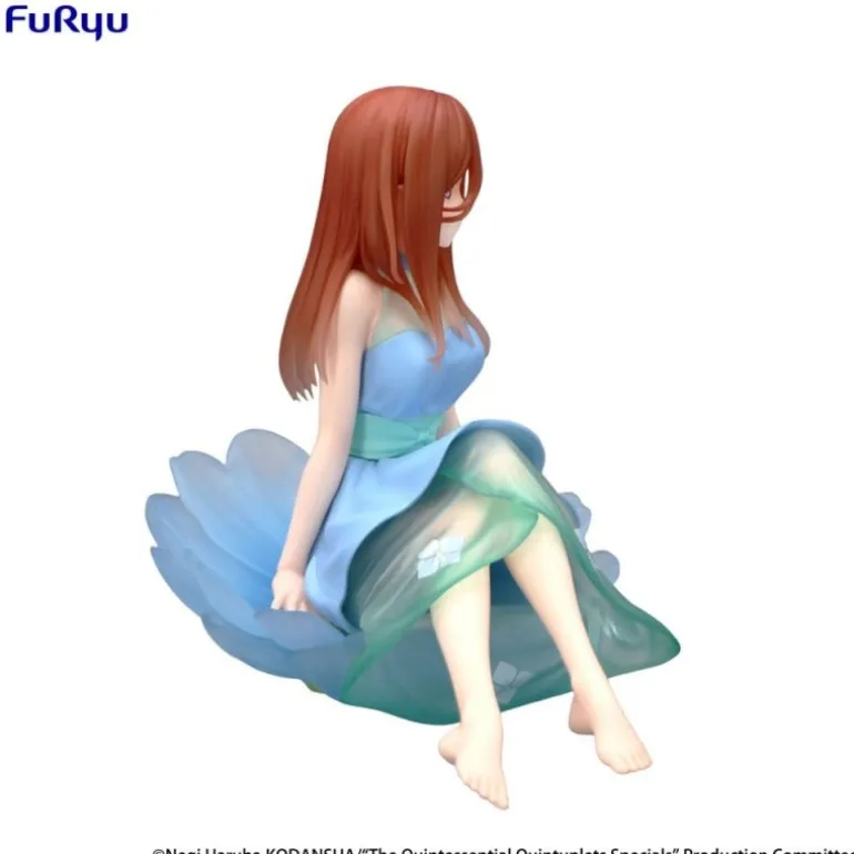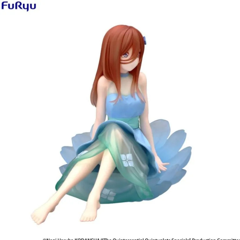 Miku está representada con un vestido azul floral, sentada sobre un pétalo de flor, lo que añade un toque de suavidad y encanto a su apariencia. Su expresión serena y su melena pelirroja complementan a la perfección el diseño. Ideal tanto para regalar como para darse un capricho, esta estatua aporta un toque sofisticado a cualquier colección.