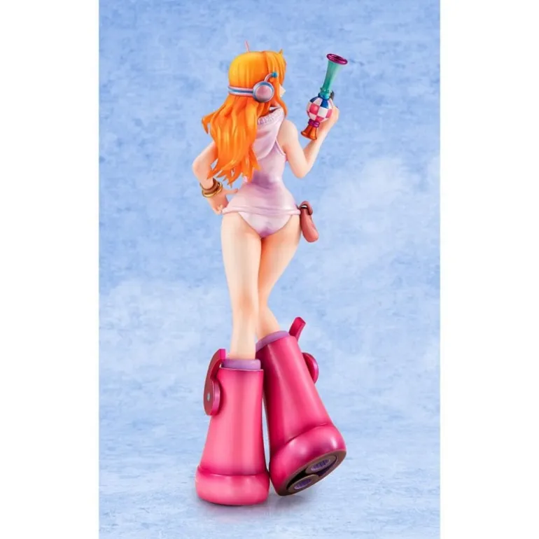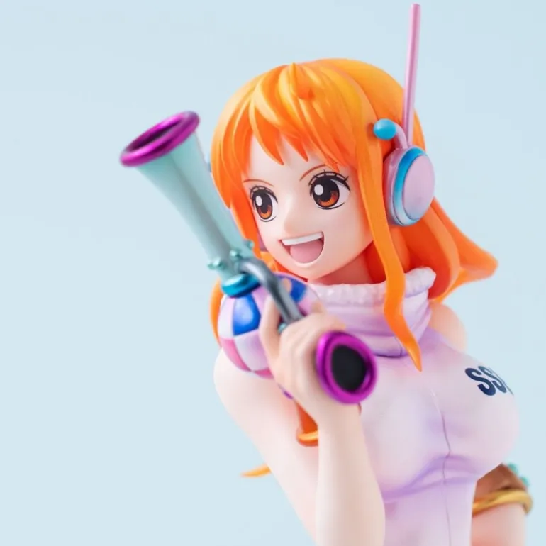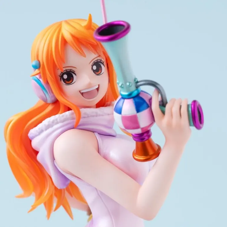 Descubre la estatua de Nami de la serie One Piece, una joya para los coleccionistas. Esta figura fabricada en PVC, pertenece a la línea Portrait Of Pirates de MegaHouse y mide aproximadamente 25 cm de altura. Nami está representada con su distintivo cabello naranja, luciendo un conjunto en tonos rosados y botas altas del mismo color. La pose segura y el detallado diseño, incluido su tatuaje característico, capturan la esencia del personaje con gran precisión. Este producto con licencia oficial es un regalo ideal para cualquier fan del anime o como un capricho personal. Añade esta figura excepcional a tu colección y celebra el espíritu aventurero de One Piece.