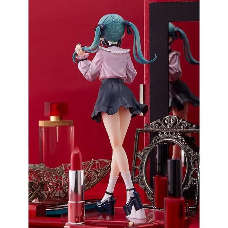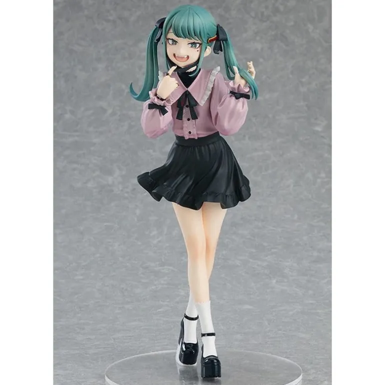 La estatua de PVC Pop Up Parade L Hatsune Miku The Vampire Ver. es una deslumbrante pieza de colección que captura la esencia encantadora y vampírica de Miku. Con un diseño meticuloso, esta figura presenta detalles finamente elaborados en sus 24 cm de alto, desde el expresivo rostro con colmillos hasta el conjunto de blusa rosa y falda negra. Las coletas verdes de Miku añaden ese toque icónico que los fans adorarán.