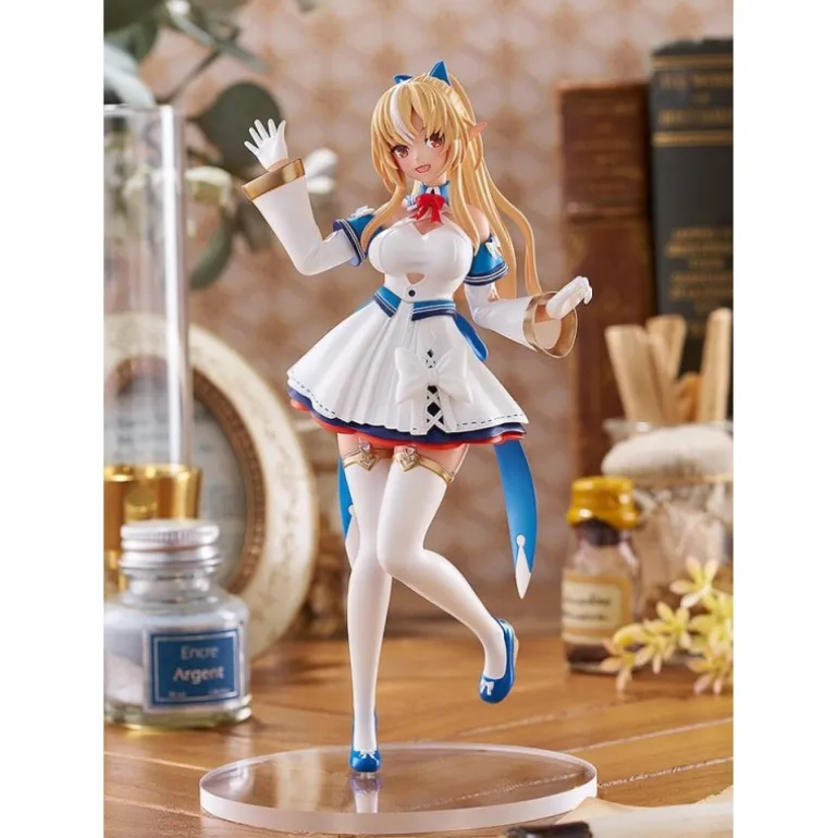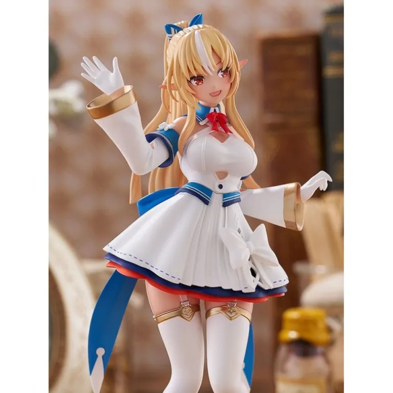 La Estatua PVC Pop Up Parade Shiranui Flare es una exquisita representación de un personaje de Hololive Production. Con una altura aproximada de 17 cm, esta figura captura a la perfección cada detalle, desde su cabello rubio y largo, hasta su vibrante vestimenta en tonos blancos, azules y rojos. La estatua muestra a Flare en una postura dinámica, saludando con una expresión amigable y segura. El atuendo está cuidadosamente diseñado con detalles como un lazo en su cintura y elegantes guantes, todo fabricado en PVC de alta calidad.