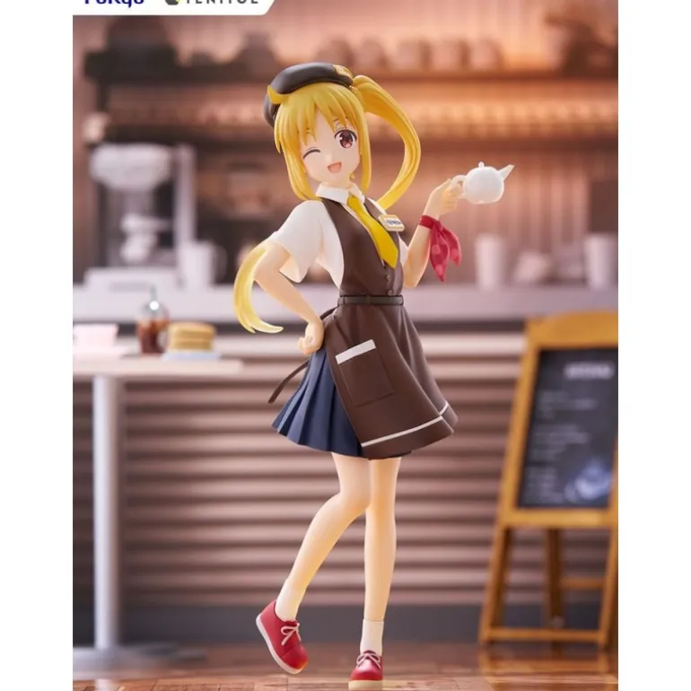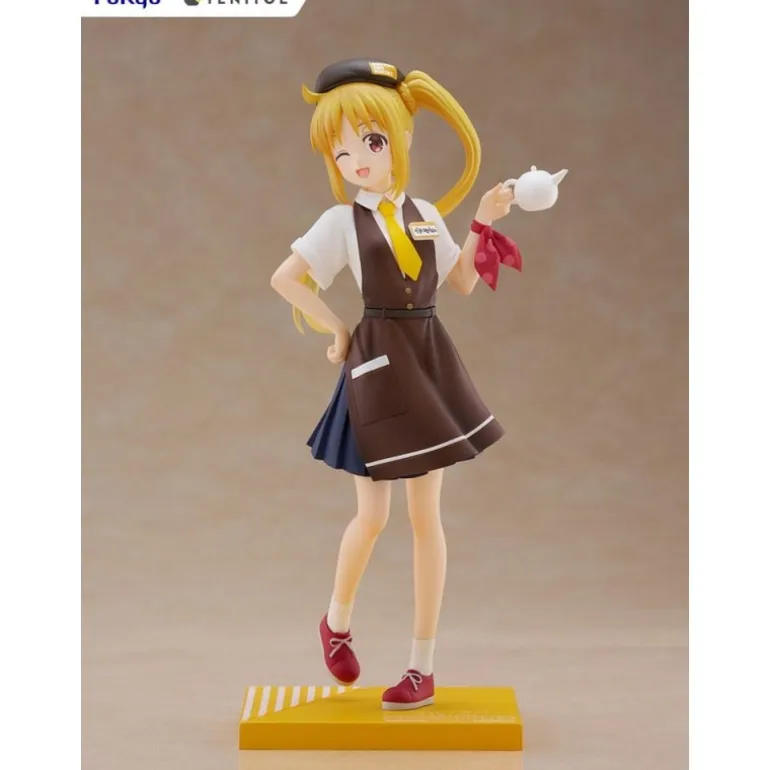Descubre la estatua de PVC de Nijika Ijichi de la popular serie Bocchi the Rock!, una pieza única y detallada que captura la esencia del personaje en un encantador estilo café. Con una altura de aproximadamente 20 cm, esta figura muestra a Nijika con un uniforme de camarera que destaca por su color marrón y detalles meticulosos como una blusa blanca y una corbata amarilla brillante. El diseño incluye un delantal con bolsillos, una falda plisada azul marino y unos elegantes zapatos rojos con calcetines blancos que le dan un toque adorable.