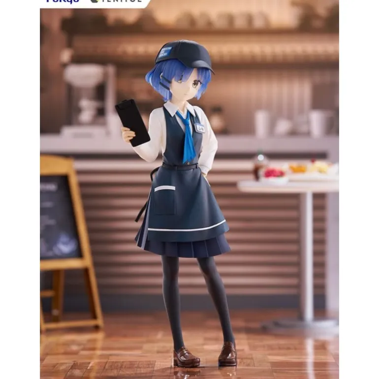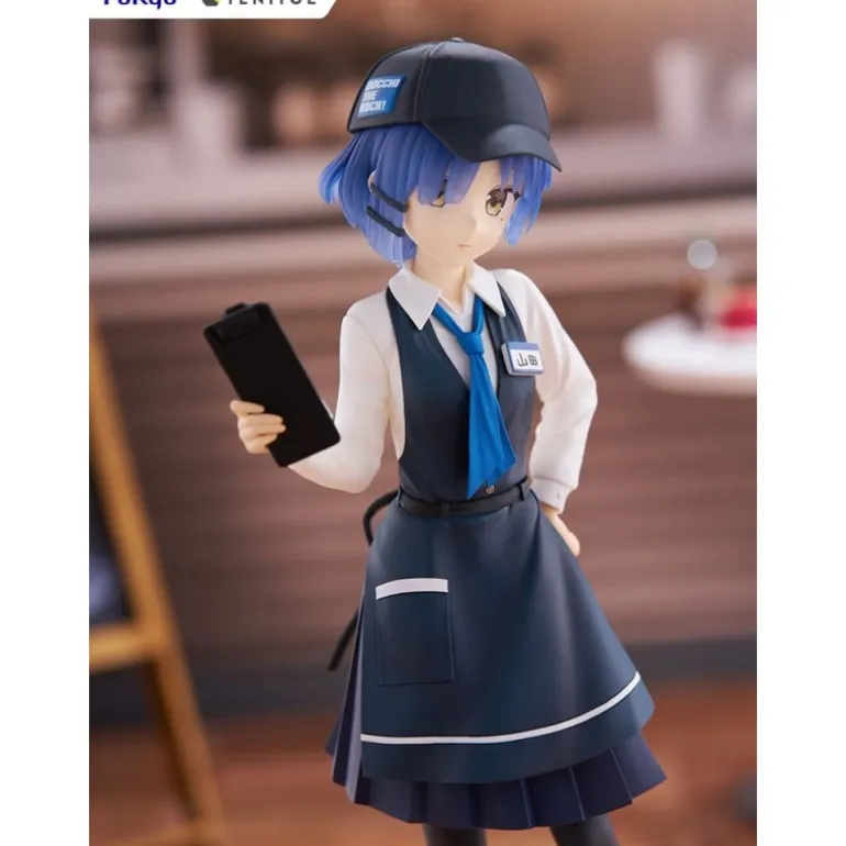 Descubre la detallada estatua de PVC de Ryo Yamada de 21 cm, inspirada en la popular serie animada Bocchi the Rock!. Esta figura captura a Ryo en un encantador estilo cafetería, con un uniforme compuesto por una falda azul marino, camisa blanca y un delantal a juego. Destaca su cabello azul brillante y una gorra que complementa su atuendo, sosteniendo un menú en la mano.