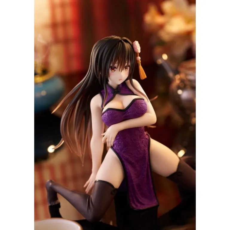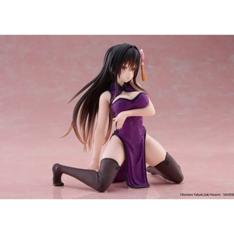 Preciosa estatua de PVC de Yui Kotegawa en su versión vestido chino, parte de la popular serie To Love Ru Darkness. Con una altura de aproximadamente 13 cm, esta figura destaca por su detallado diseño y acabado. Yui está representada con un elegante vestido morado, destacando su postura seductora y elegante. La base y los minuciosos detalles como el adorno floral en su cabello, hacen de esta pieza un excelente añadido para cualquier colección de figuras de anime.