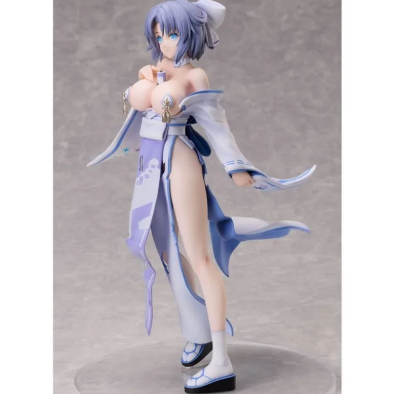 Descubre la estatua de Yumi de la colaboración entre Azur Lane y Shinobi Master Senran Kagura New Link, fabricada por FREEing. Esta impresionante figura de PVC a escala 1/7 mide aproximadamente 25 cm y representa a Yumi en una pose dinámica con un diseño de vestimenta intrincado en tonos azul y blanco. Cada detalle, desde su expresión facial hasta los adornos delicados de su atuendo, ha sido esculpido con precisión para capturar la esencia del personaje. Viene en una caja con ventana, ideal para exhibir o regalar a fanáticos del manga y anime.