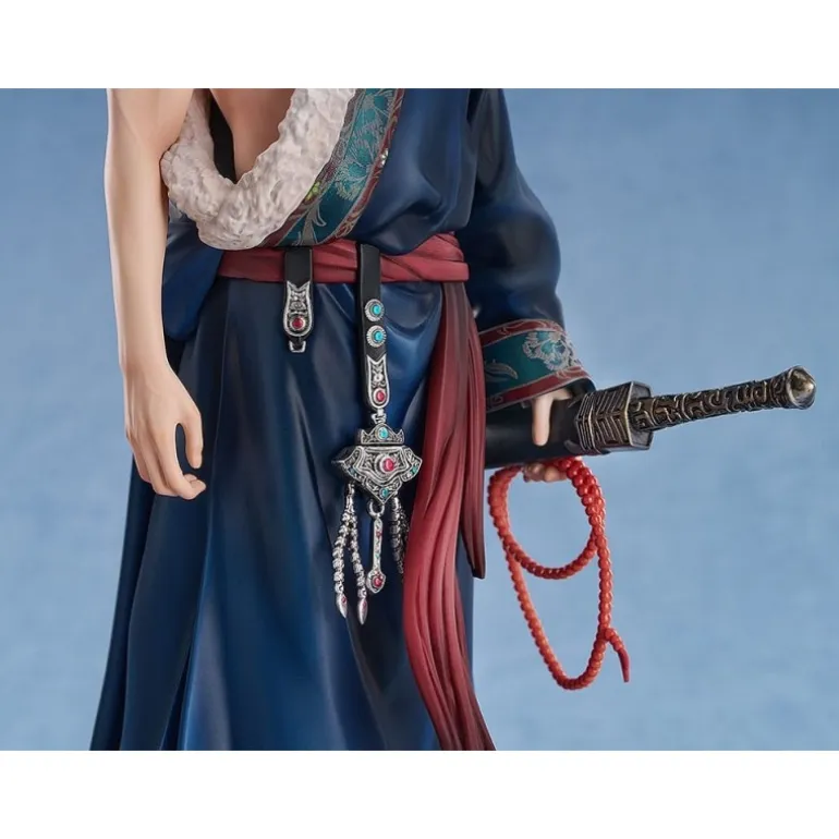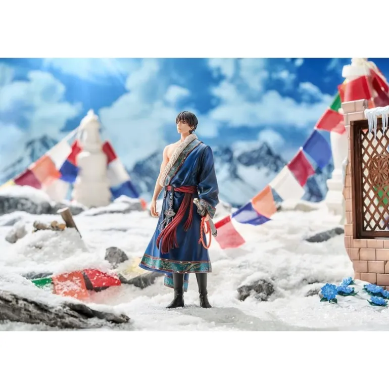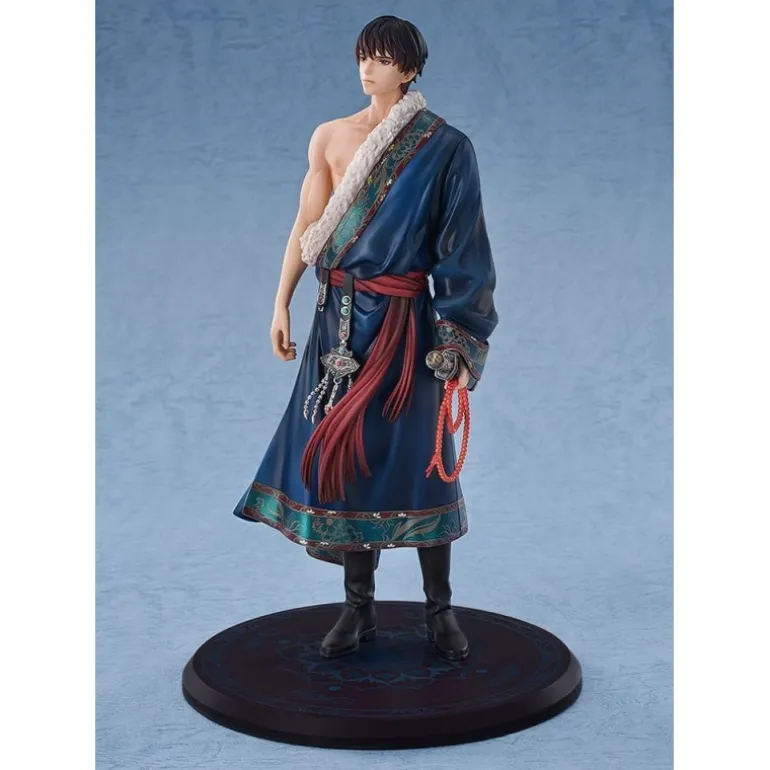 Descubre la elegante estatua de Zhang Qiling de 24 cm de altura, un personaje icónico del popular manga y anime Time Raiders. Esta figura está meticulosamente fabricada en PVC, asegurando una gran calidad y detalle en cada curva y accesorio. Vestido en un manto azul profundo que deja al descubierto su torso, Zhang Qiling sostiene elegantemente una espada, complementando su atuendo con detallados accesorios en tonos rojos y plateados. El diseño incluye una base decorativa que resalta la presencia de la figura, haciéndola un elemento imprescindible para fanáticos y coleccionistas.