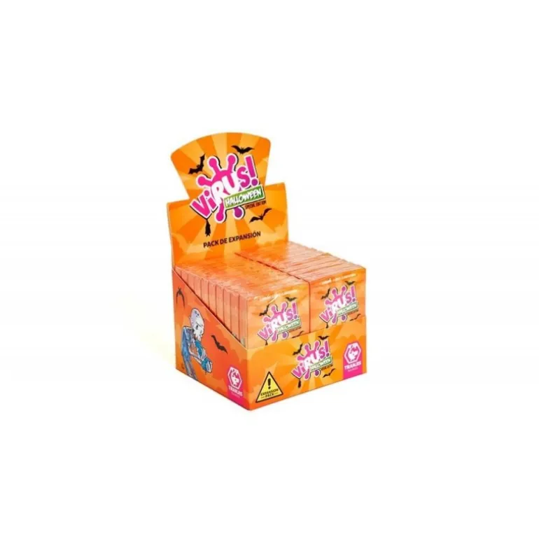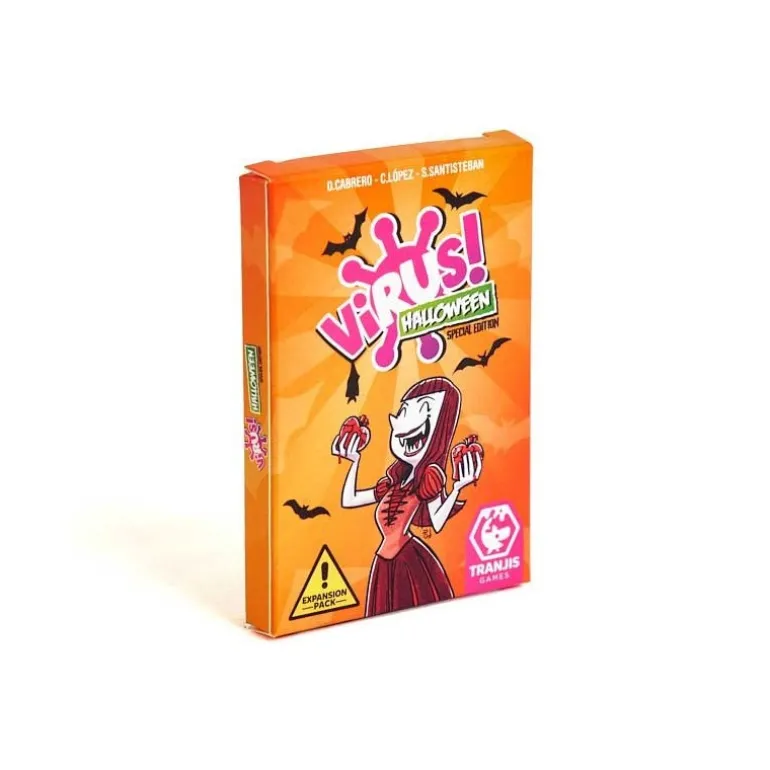 ¡Sumérgete en una experiencia de juego escalofriante con la expansión Virus! Halloween de Tranjis Games! Esta expansión del popular juego de cartas Virus! trae un ambiente aterrador con nuevas cartas temáticas de Halloween que transformarán tus partidas en aventuras divertidamente espeluznantes. Las ilustraciones de los personajes monstruosos, como vampiros y calabazas, le dan un toque único y festivo a tu baraja.
