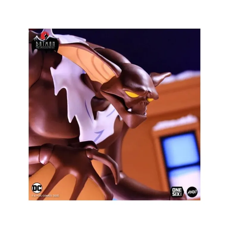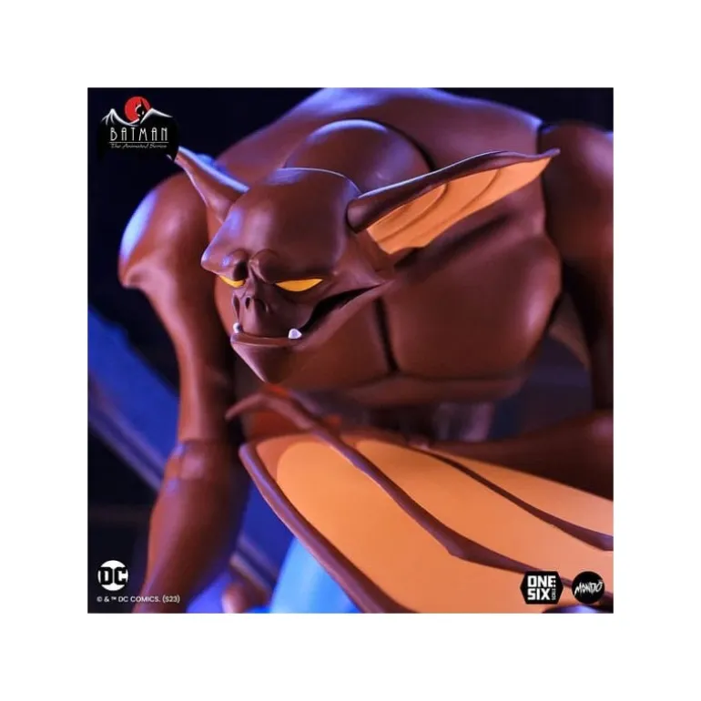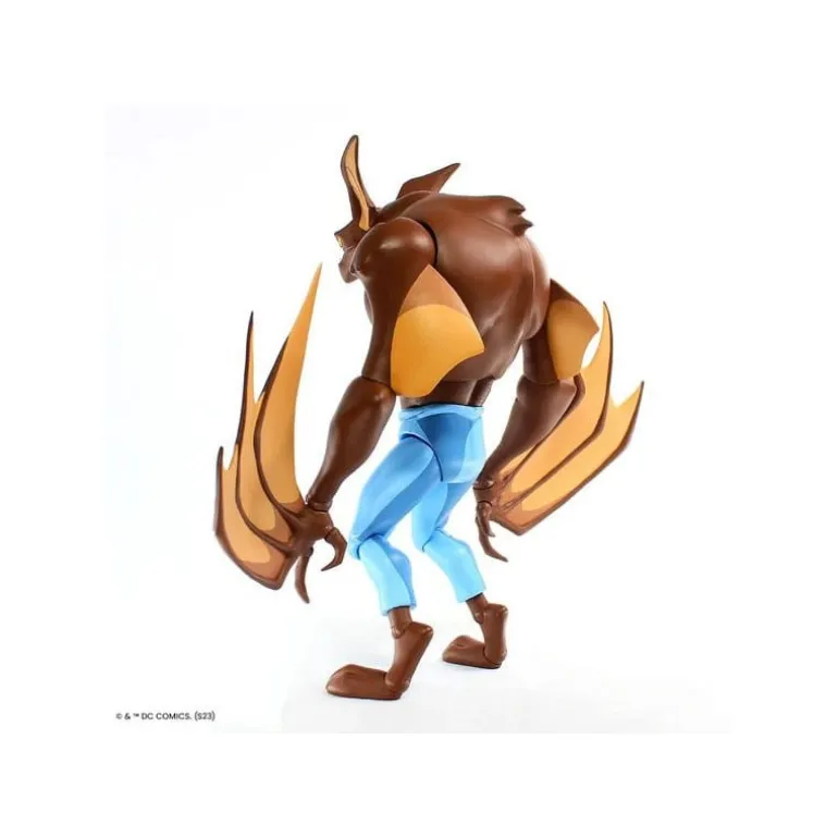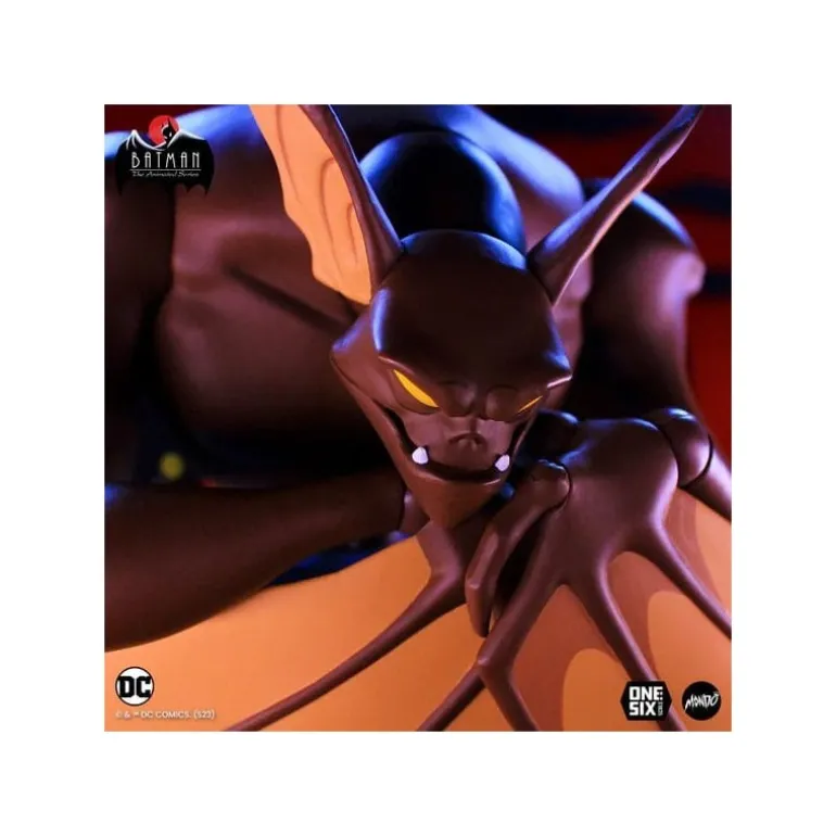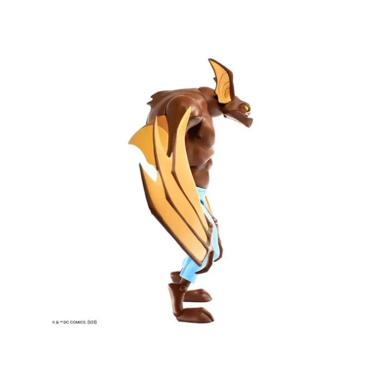 La impresionante figura de Man-Bat de 32 cm captura la esencia del icónico personaje de Batman: la serie animada. Hecha en escala 1/6, esta figura destaca por su detallado diseño que refleja fielmente los rasgos del personaje, desde su cuerpo musculado y de color marrón hasta sus características alas amarillas. El personaje viste pantalones azules, realzando el contraste con su piel.