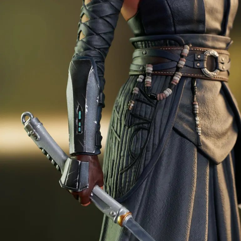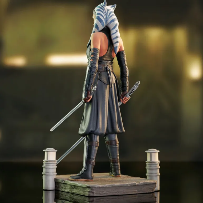 La calidad y atención al detalle de esta figura es simplemente impresionante. Cada rasgo de Ahsoka Tano, el querido personaje de Star Wars, ha sido recreado fielmente, desde su distintivo tocado hasta su vestimenta icónica. Cada línea y cada textura han sido cuidadosamente esculpidas y pintadas a mano, mostrando el nivel de maestría artesanal que Gentle Giant ha logrado alcanzar.