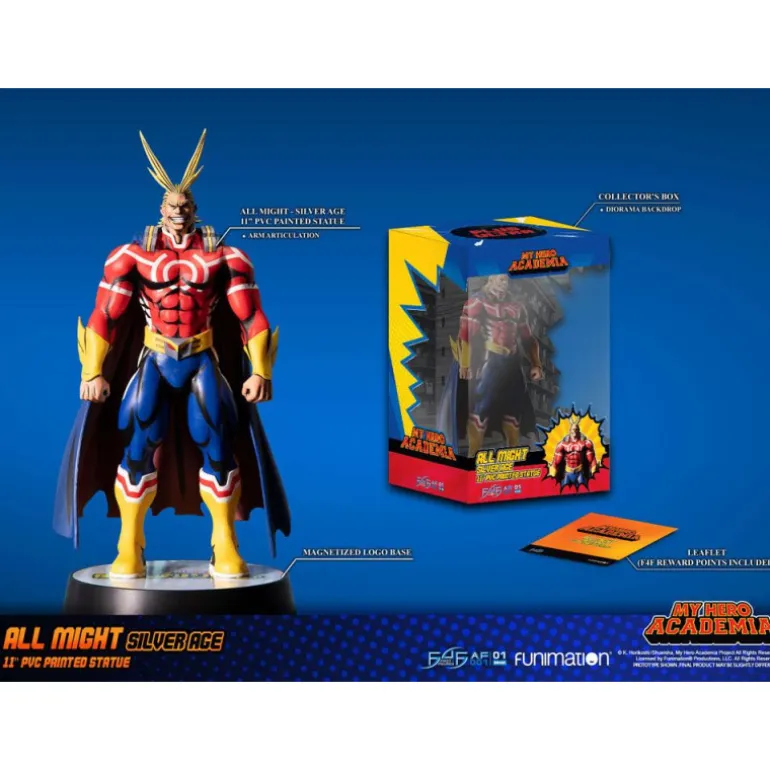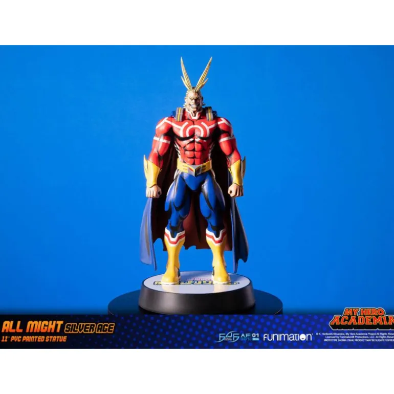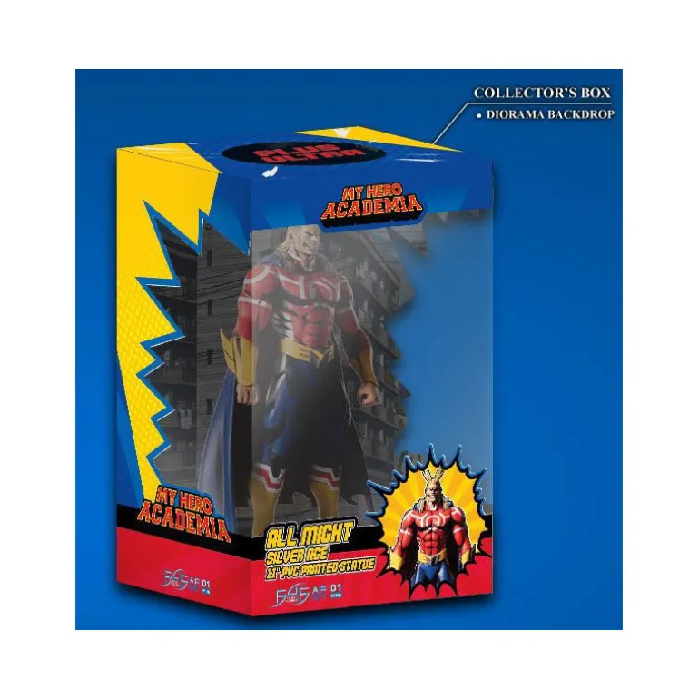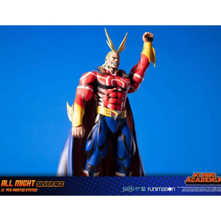 La figura de All Might Silver Age de My Hero Academia es un producto de alta calidad fabricado por First 4 Figures. Con una altura de aproximadamente 28 cm, esta figura articulada captura a la perfección la esencia del héroe más popular del anime y manga.