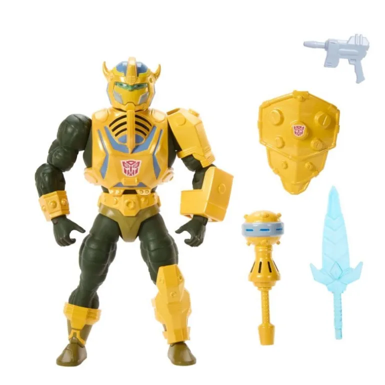 La Figura Armada Man-At-Arms Bumblebee es una pieza exclusiva que fusiona el mundo de Masters of the Universe con Transformers. Esta figura articulada de 14 cm presenta un diseño único y detallado, ideal para coleccionistas y aficionados. Con una armadura amarilla y dorada que destaca sobre el verde oscuro del cuerpo, muestra el icónico símbolo Autobot en el pecho, fusionando la fuerza de Man-At-Arms con el heroísmo de Bumblebee. Fabricado por Mattel, este producto con licencia oficial incluye varios accesorios que amplían su posabilidad y escenarios de juego.