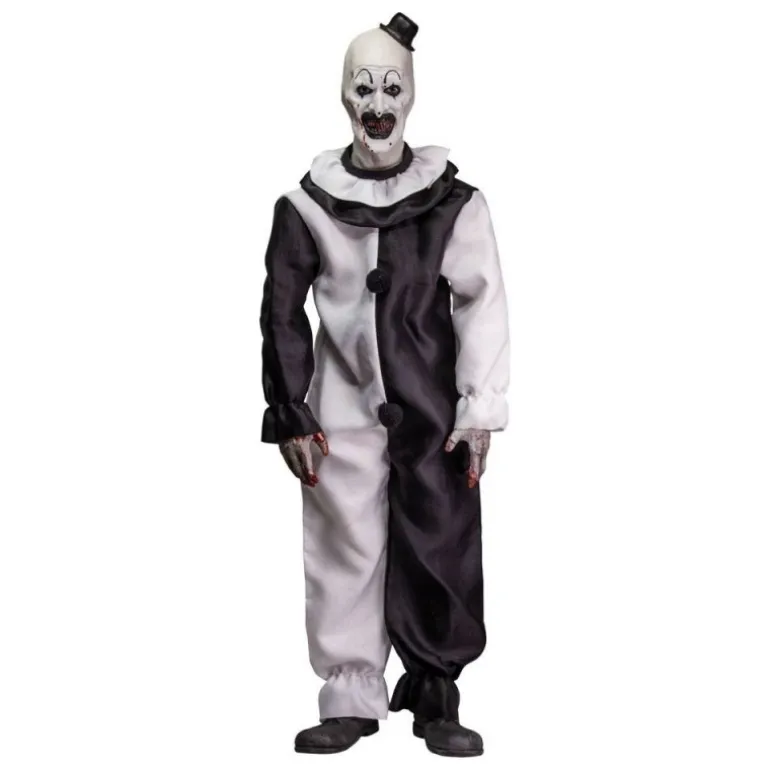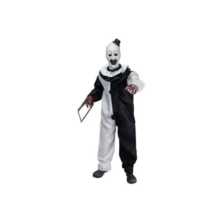 Adéntrate en el escalofriante mundo de ‘Terrifier’ con esta impresionante figura de Art The Clown. Con un tamaño de aproximadamente 30 cm y fabricada por Trick Or Treat Studios, esta figura captura cada detalle aterrador del personaje icónico. La figura viene vestida con su clásico traje de payaso en blanco y negro, acompañado de un sombrero diminuto que añade un toque genuino.
