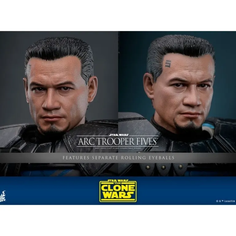 Fabricada por Hot Toys, la figura viene con múltiples accesorios que permiten recrear escenas icónicas de The Clone Wars. Los detalles en su armadura, de tonos azules y grises, destacan la precisión y calidad del trabajo artesanal. El casco extraíble revela el rostro del personaje con detalles meticulosos y ojos móviles.