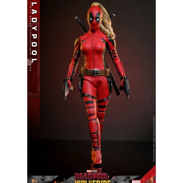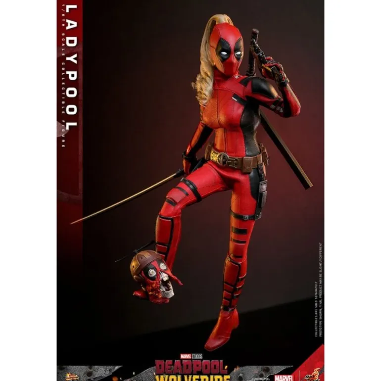 La figura articulada Ladypool, inspirada en la película «Deadpool & Wolverine«, es una pieza imprescindible para cualquier fan de Marvel. Con una altura aproximada de 30 cm, esta figura en escala 1/6 muestra a Ladypool en su característico traje rojo y negro, complementado con una melena rubia detallada y ondulada que añade un toque distintivo.