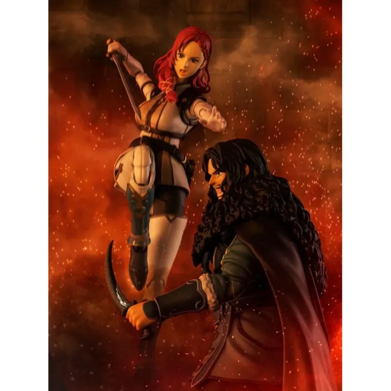 La figura presenta una elaborada representación de Hera, con detalles precisos en su vestimenta y armadura. Su cabello rojo y su expresión decidida resaltan su carácter indomable. Los accesorios incluyen una espada y piezas intercambiables, permitiéndote personalizar sus poses.