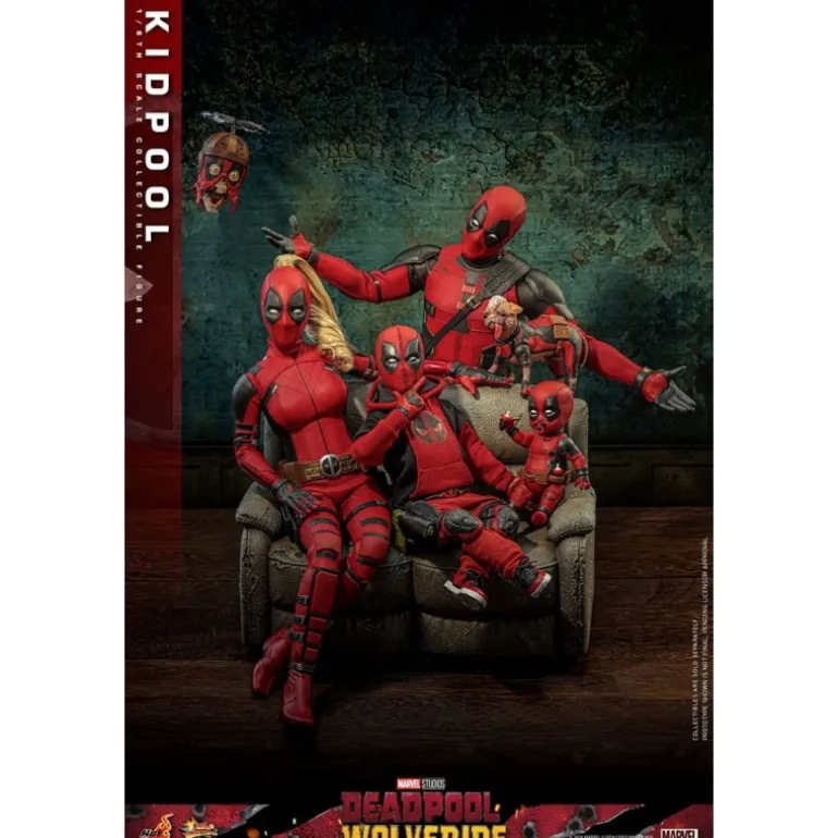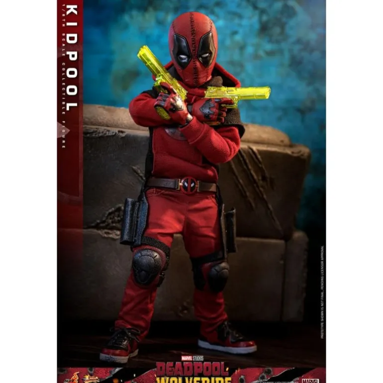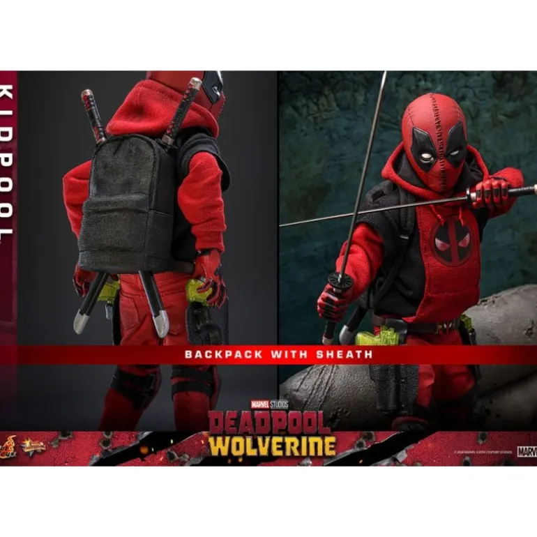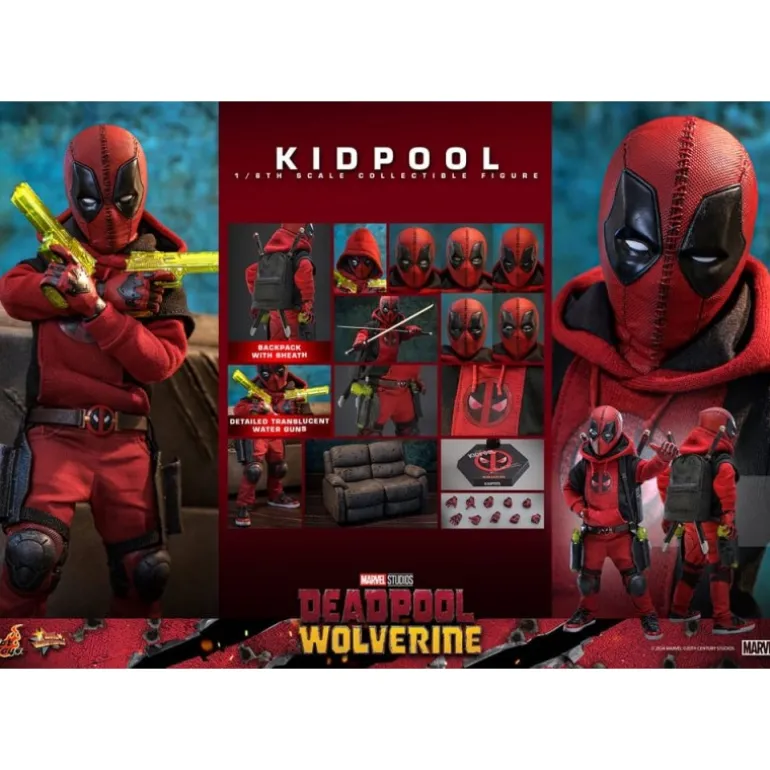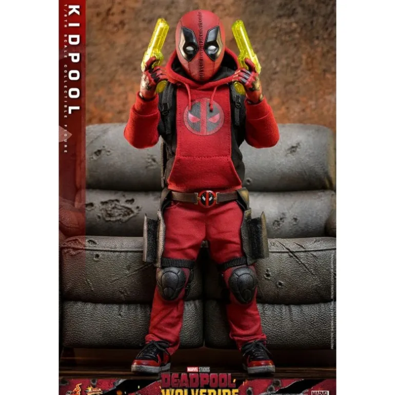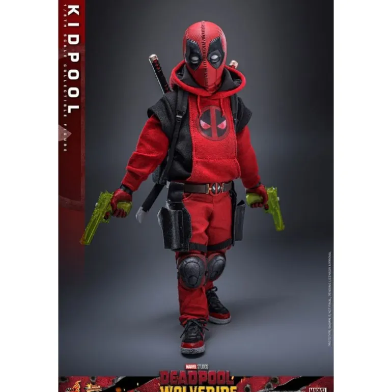 Descubre la increíble figura articulada de Kidpool, inspirada en la película ‘Deadpool & Wolverine’. Con una altura aproximada de 22 cm y fabricada a escala 1/6, esta pieza es un sueño para cualquier fan de Marvel. La figura está vestida con un atuendo rojo y negro, típico de Deadpool, e incluye detalles como capucha, pistolas de agua translúcidas y mochilas con funda para espadas. Además, cuenta con expresiones faciales intercambiables para capturar cada esencia del personaje.