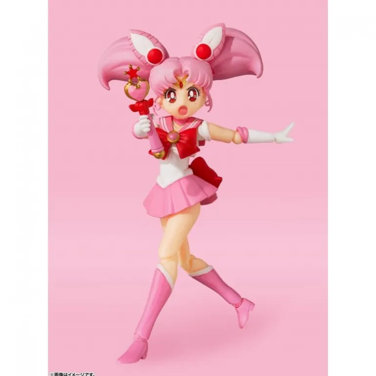 La figura articulada de Sailor Chibi Moon de la serie SH Figuarts es un imprescindible para los fanáticos de Sailor Moon. Esta figura de 10 cm destaca por su colorido diseño, fiel al estilo de la Animación Color Edition.
