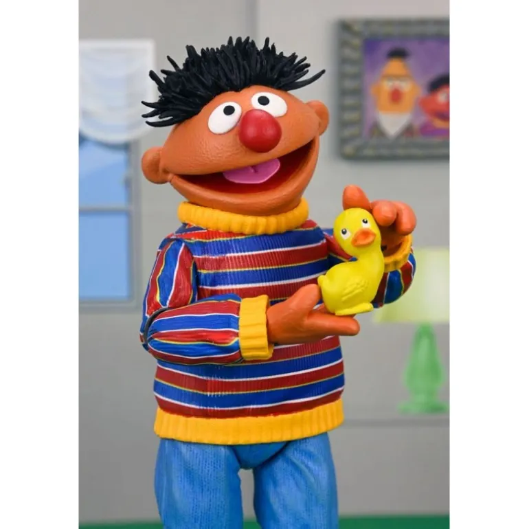 Descubre la figura articulada de Epi de la aclamada serie de televisión Barrio Sésamo. Esta figura, parte de la línea Ultimate, ofrece un diseño detallado de aproximadamente 18 cm de altura. Epi viste su icónico jersey de rayas multicolor con cuello, mangas y cintura en un vibrante color amarillo, complementado con pantalones azules y zapatillas rojas con detalles blancos.