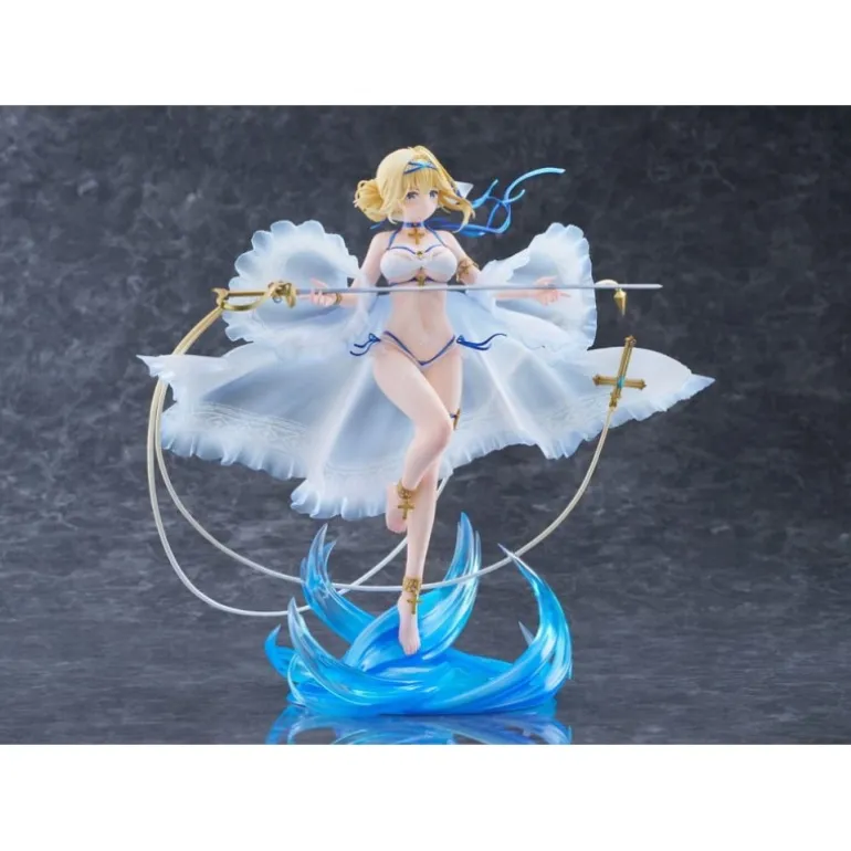 Descubre la exquisita figura de Jeanne D’Arc, un tributo a la popular serie ‘Azur Lane’. Esta estatua de edición limitada de AmiAmi, fabricada por Aliceglint, captura a Jeanne en un momento etéreo, bañada por una luz que realza su traje blanco y su expresión placentera. Elaborada con detallado PVC, esta figura de 26 cm viene acompañada de una base azul que simula olas del mar, realzando el ambiente marítimo del personaje.