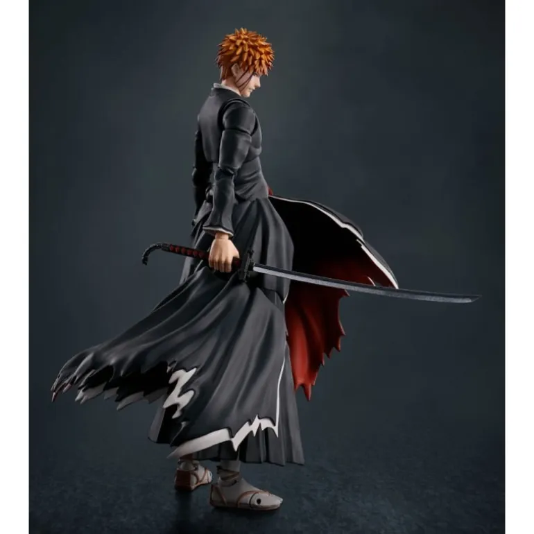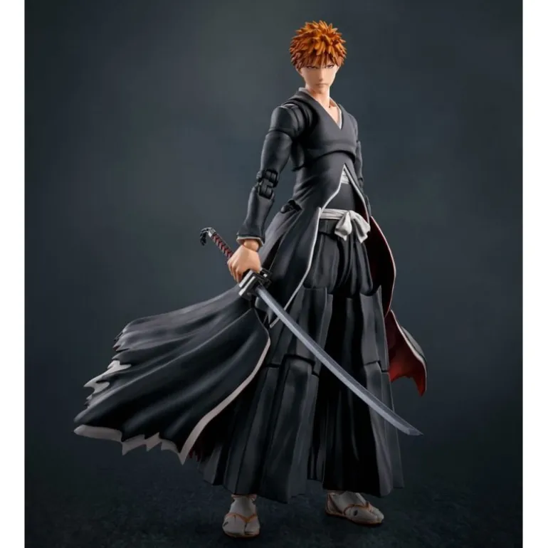 Descubre la figura articulada de Ichigo Kurosaki, protagonista de Bleach, perteneciente a la prestigiosa línea S.H. Figuarts. Esta pieza, de aproximadamente 16 cm de altura, captura con detalle la presencia y energía del personaje con su icónico vestuario negro con detalles en blanco y su característica espada. Incluye múltiples accesorios, como diferentes manos intercambiables y rostros, así como efectos de ataque que replican su famoso Getsugatensho.