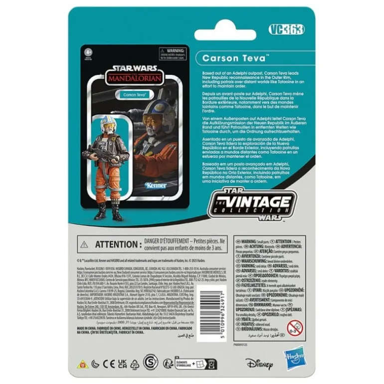 Adéntrate en el universo de Star Wars con esta detallada figura de Carson Teva, parte de la prestigiosa Vintage Collection. Con una altura de 9,5 cm, esta figura es una réplica fiel inspirada en la serie The Mandalorian. El personaje está vestido con un traje de piloto en vibrante naranja, complementado por una chaqueta marrón que realza su apariencia auténtica. En su mano, sostiene un casco de piloto decorado con colores azul y amarillo, reflejando los emblemáticos detalles de la saga.