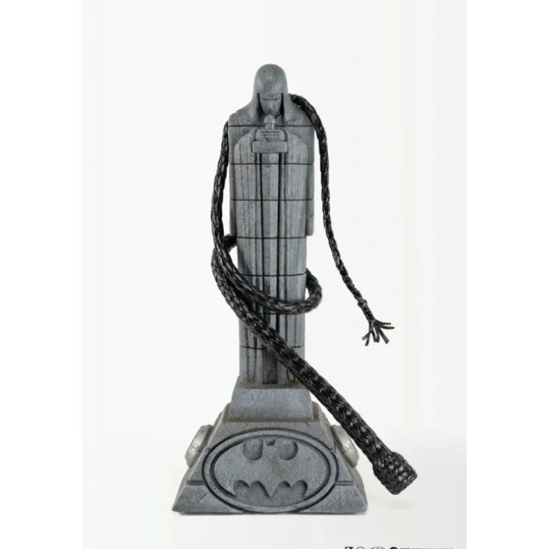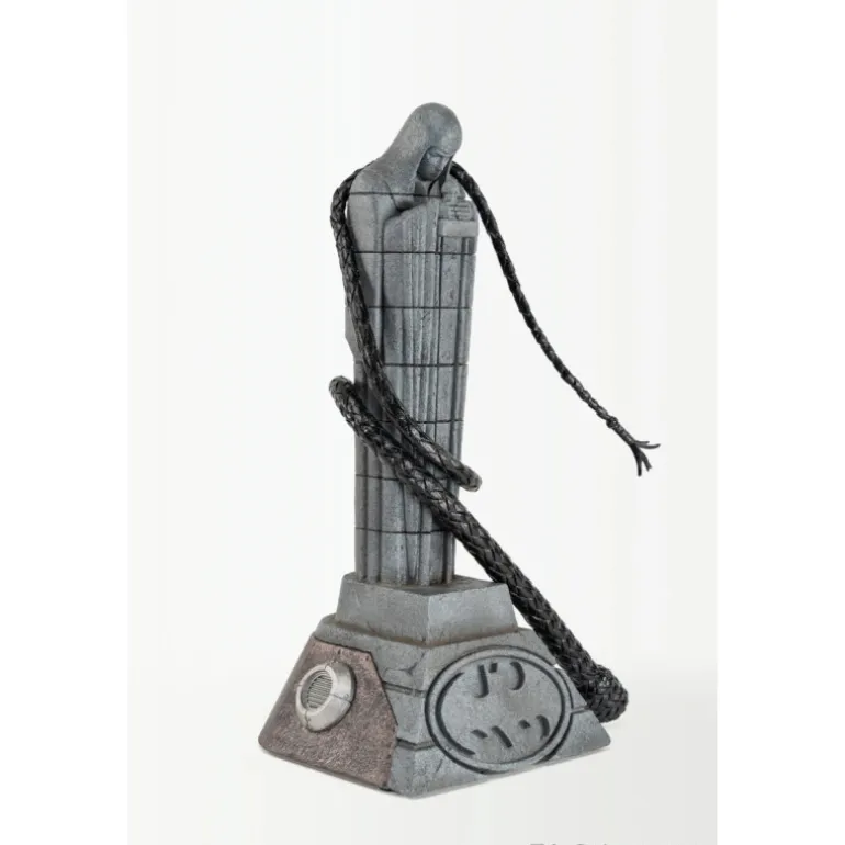 Además la base de esta magnífica escultura es en si misma otra figura que representa la imponente escultura gótica que preside el ayuntamiento de Gotham City con el látigo de Selina al rededor que se puede poner y quitar. No dejes de ver con calma el resto de fotos para que puedas apreciar los detalles de esta figura.