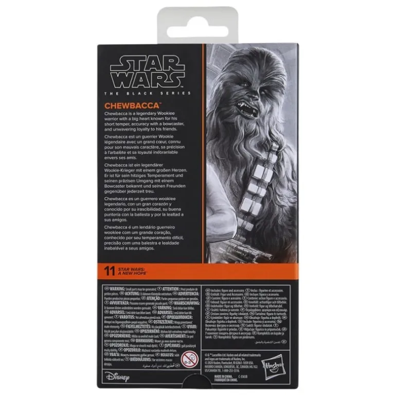 Revive la emoción de la saga galáctica con esta detallada figura de Chewbacca de Star Wars Episode IV de la línea Black Series de Hasbro. Con una altura de 15 cm, esta pieza captura con precisión la esencia del querido wookiee tal como lo vimos en ‘Una Nueva Esperanza’. Fabricada con precisión y detalle, la figura presenta tonos marrones y detalles esculpidos que representan fielmente su denso pelaje.