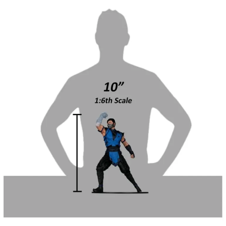 Vestido con su icónico traje azul y negro, Sub-Zero está esculpido en una pose dinámica que evoca su habilidad para manipular el hielo. El diseño incluye detalles meticulosos en su vestimenta, como las texturas del traje y los adornos en su máscara, capturando perfectamente la esencia del personaje.