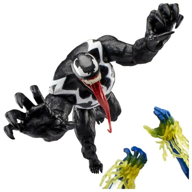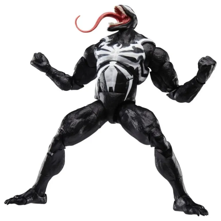 ¡Descubre la impresionante figura de Venom de la línea Marvel Legends Gamerverse inspirada en el videojuego Spider-Man 2! Esta detallada figura de acción de 26 cm captura a la perfección la esencia del simbionte más temido del Universo Marvel. Con un acabado en negro brillante y detalles en blanco sobre su musculoso cuerpo, esta figura destaca por su diseño premium.