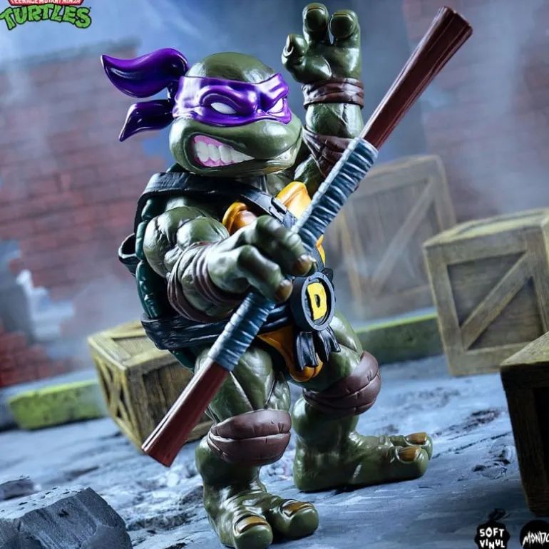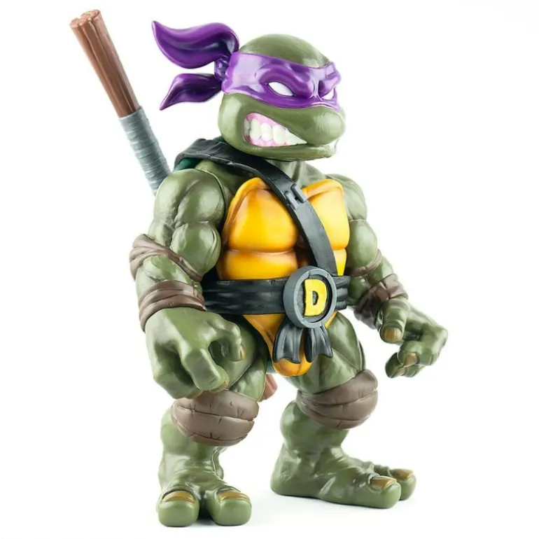 Descubre la figura de Donatello de las Tortugas Ninja, una pieza coleccionable única de 25 cm fabricada en vinilo suave. Esta figura se presenta con un diseño detallado que captura a la perfección la esencia del personaje, desde su característico antifaz morado hasta el cinturón negro con la inicial ‘D’. Donatello sostiene su bastón bo, emulando su destreza en combate.