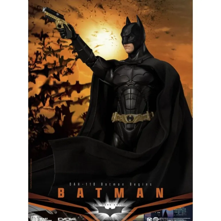 Descubre la impresionante figura articulada de Batman inspirada en la película «Batman Begins». Esta figura de 21 cm a escala 1/9 está meticulosamente detallada, capturando la esencia del Caballero Oscuro con su traje negro icónico y su emblemático cinturón dorado. Equipado con una capa fluida, Batman también sostiene un batarang dorado listo para la acción. Fabricada por Beast Kingdom Toys, esta figura viene con varios accesorios, ofreciendo múltiples opciones de pose para los amantes de DC Comics. Ideal como regalo original o para los coleccionistas que buscan una pieza única. Producto con licencia oficial, asegurando autenticidad y calidad.