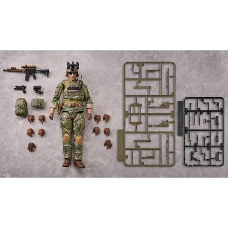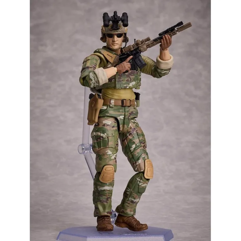 La figura Figma Special Forces Operator de la serie Little Armory es una impresionante representación de las fuerzas especiales en formato coleccionable. Mide aproximadamente 16 cm de altura y está meticulosamente detallada con un uniforme de camuflaje, rodilleras y casco. Fabricada por Tomytec, esta figura articulada permite una amplia variedad de poses.
