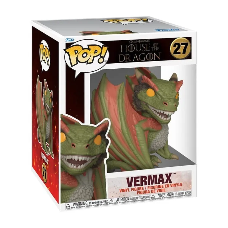 Descubre la Figura Funko POP! Oversized de Vermax inspirada en la serie ‘House of the Dragon’. Este impresionante coleccionable de vinilo, fabricado por Funko, captura cada detalle del majestuoso dragón en una forma compacta y decorativa. Con un tamaño aproximado de 15 cm, Vermax se presenta en un vibrante color verde con detalles en rojo y naranja que resalten su presencia imponente y sus características escamas. Sus ojos amarillos y dientes blancos afilados le otorgan una expresión poderosamente intimidante, perfecta para añadir a cualquier colección de ‘Game of Thrones’.
