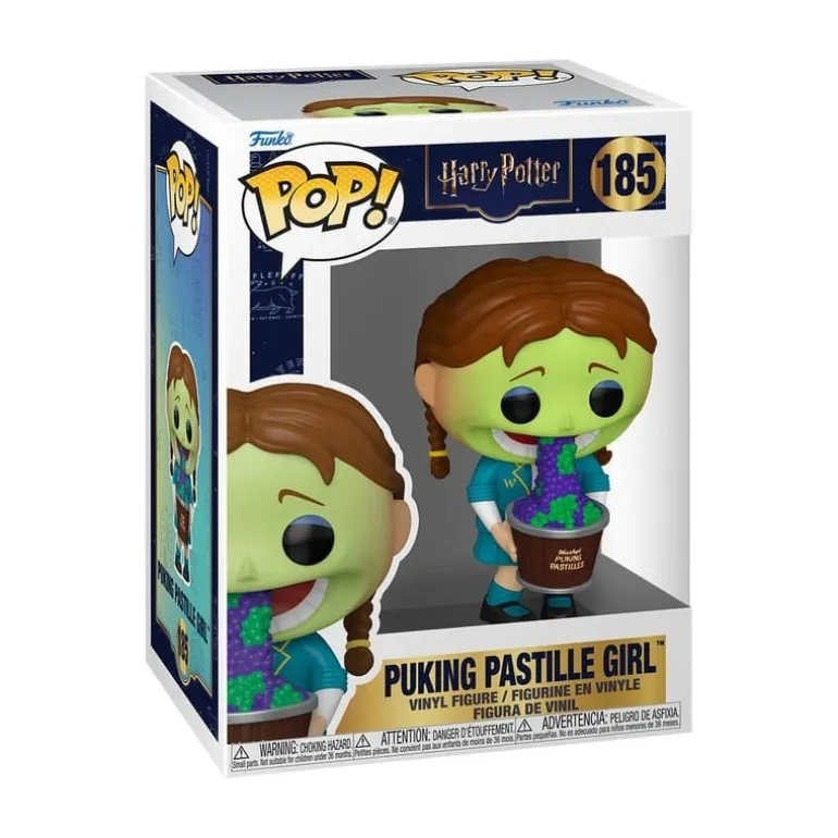 Descubre la figura de vinilo POP! Puking Pastille Girl de Harry Potter, un coleccionable imprescindible para los verdaderos fans de la saga mágica. Esta figura de 9 cm captura la esencia divertida y traviesa del icónico mundo de Hogwarts. Fabricada por Funko, la figura presenta un diseño vibrante con tonos verdes y púrpuras, representando a la perfección el efecto de las grageas vomitivas. Con su expresión característica y un cubo que rebosa de coloridos caramelos, esta pieza es una adición única a cualquier colección.