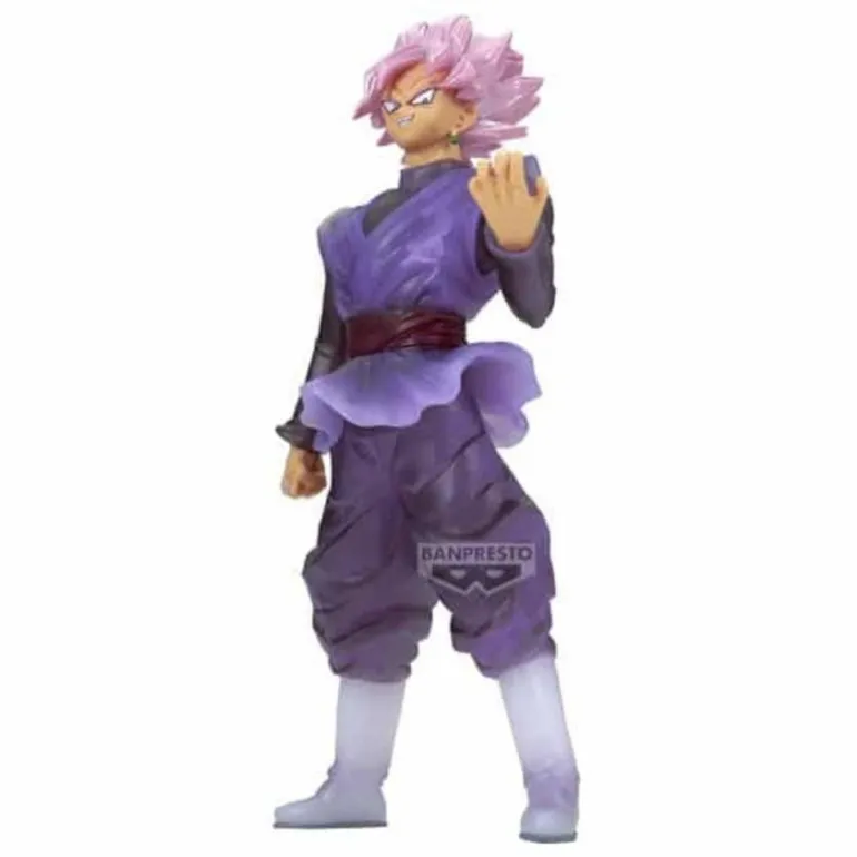La figura de Goku Black Super Saiyan Rosé es un imprescindible para cualquier coleccionista de Dragon Ball Super. Esta figura, fabricada por Banpresto y perteneciente a la colección Clearise, destaca por su impresionante detalle y calidad. Con una altura de 19 cm, está elaborada en PVC y viene con una base para exposición, asegurando su estabilidad y presencia en cualquier estantería.