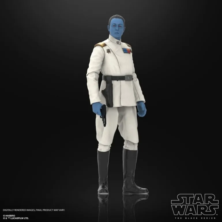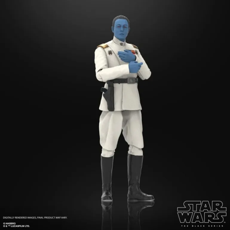 Descubre la magistral figura de Grand Admiral Thrawn de Star Wars: Ahsoka, parte de la renombrada línea Black Series de Hasbro. Esta figura de acción, que mide 15 cm de altura, captura con precisión los detalles característicos del personaje, desde su distintivo tono de piel azul hasta su uniforme impecable en color blanco, complementado con hombreras doradas y botas altas negras.