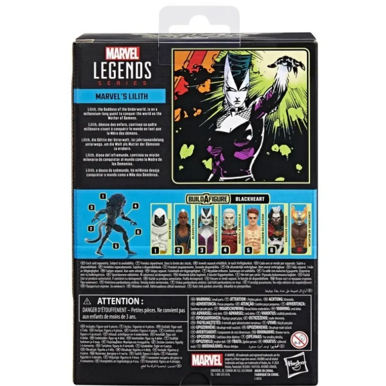 Descubre la espectacular figura de Marvel’s Lilith de la serie Marvel Legends de Hasbro. Con un diseño detallado y articulación premium, esta figura de 15 cm captura la esencia del personaje de los cómics de El motorista fantasma y otras aventuras Marvel. Su atuendo combina colores vibrantes como el morado y detalles en malla blanca, acompañado por una capa verde que resalta su presencia. Las articulaciones en cabeza, brazos y piernas permiten infinitas poses para exhibir en tu colección. Incluye dos accesorios adicionales y piezas para completar la figura de Blackheart.