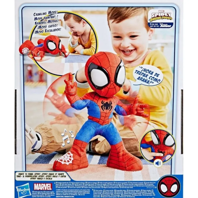 ¡Descubre la magia del juego interactivo con la figura Hasbro Spidey Baila y Gatea de Marvel Spidey and His Amazing Friends! Diseñada para niños y niñas a partir de 3 años, esta figura ofrece una experiencia única llena de música, danza y acción arácnida. Presiona la telaraña en el pie de Spidey para activar el modo baile, y disfruta de 20 frases y sonidos, junto con dos canciones de la serie.