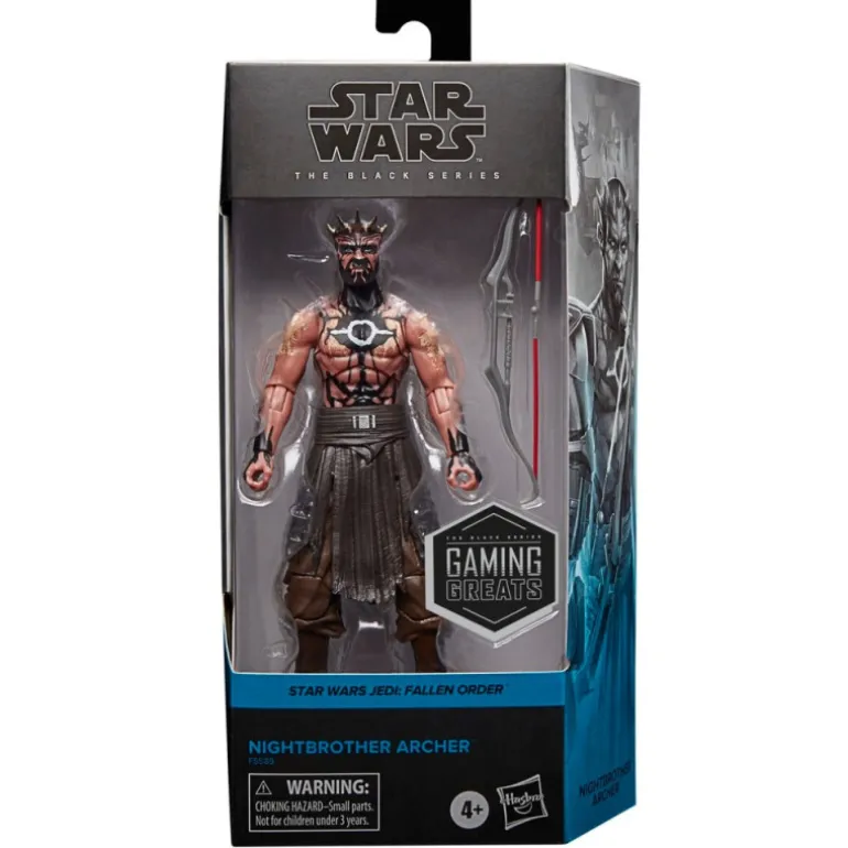 Las figuras de las Black Series son magníficas y muy bien acabadas con sus solo 15 cm de altura. Vienen en una caja diseñada para cada una, en este caso de un Hermano de la Noche arquero y es una figura articulada inspirada en el videojuego Star Wars Jedi: Fallen Order.