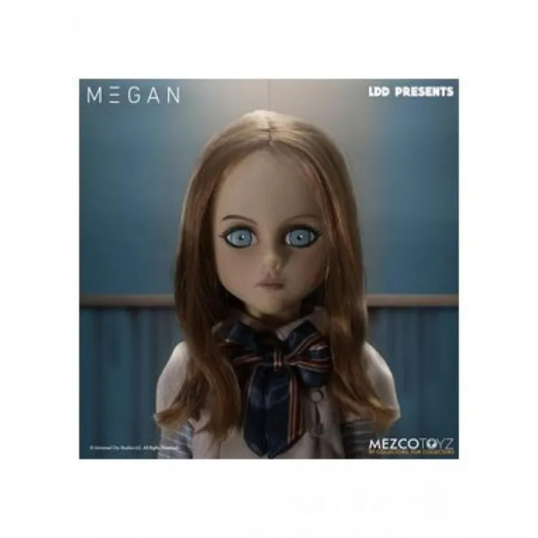 La figura de M3gan se une a la colección Living Dead Dolls de Mezco Toyz, inspirada en el personaje de la película de terror «M3gan». Con una altura de 25,5 cm, exhibe un diseño detallado con su camisa de rayas bajo un vestido beige adornado con una pajarita. Complementan su atuendo medias blancas y las clásicas Mary Janes negras. La figura cuenta con 5 puntos de articulación para facilitar su posicionado en una variedad de posturas, y viene en una caja con ventana para su exhibición. Fabricada con materiales de alta calidad, esta figura licenciada oficialmente es un artículo de colección ideal para los aficionados al terror.