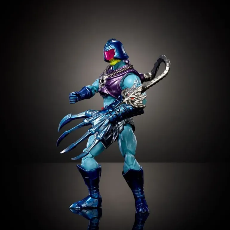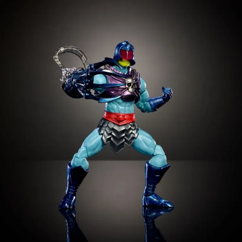 Descubre la impresionante figura articulada de Terror Claws Skeletor de la línea «Core New Etheria» de Mattel. Esta figura de coleccionista mide aproximadamente 18 cm y captura al legendario villano con un diseño imponente y lleno de detalles que fascinarán a los verdaderos entusiastas de Masters of the Universe.