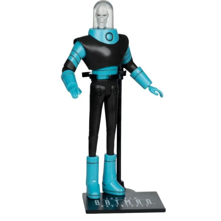 Descubre la impresionante Figura de Mr. Freeze de The New Batman Adventures, una pieza de colección que todo amante del universo DC debe tener. Esta figura articulada de 15 cm refleja el diseño clásico del personaje con un acabado en colores negro y azul brillante. Mr. Freeze lleva su característico traje con un casco transparente, acentuando su apariencia enigmática.