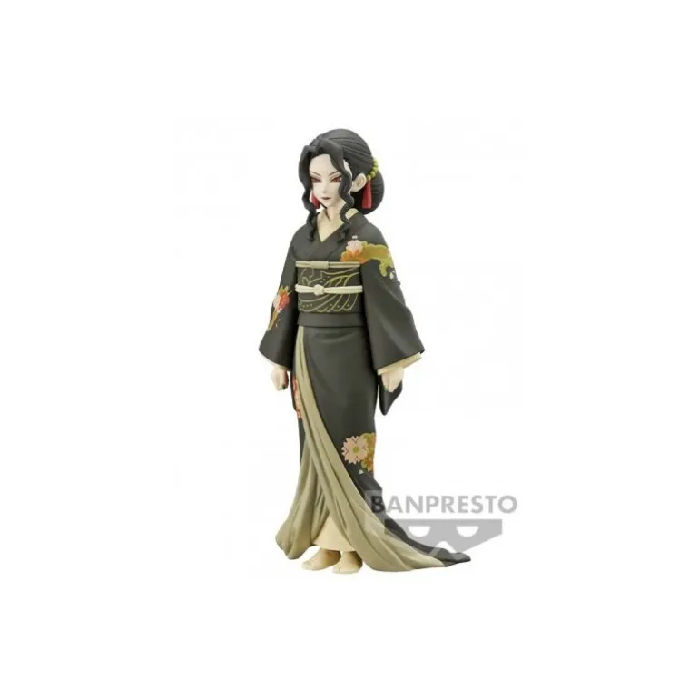 Desde la popular casa Banpresto, responsable de algunas de las figuritas más trabajadas de nuestras series y videojuegos favoritos, nos llega una maravillosa figura de 14 cm, repleta de detallitos y llena de color, que reproduce a Muzan Kibusuji transformado en mujer, el principal antagonista de Kimetsu No Yaiba o Demon Slayer.