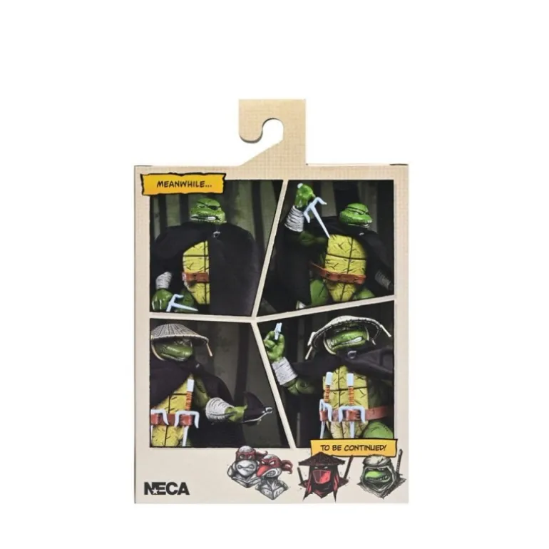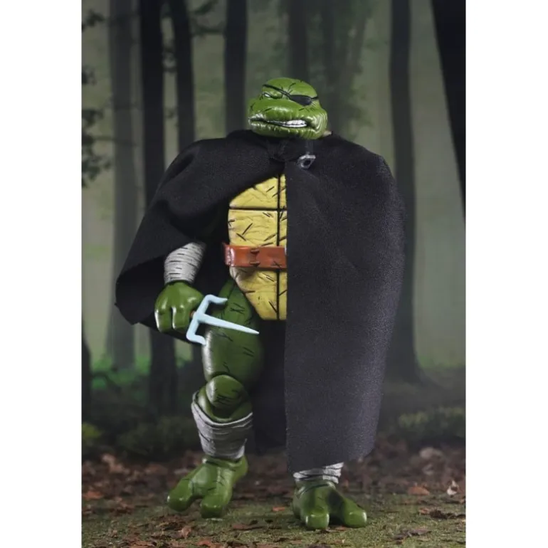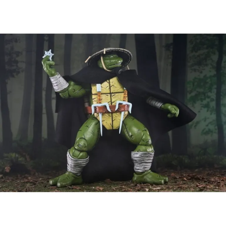 Old Man Raphael se presenta con un aspecto veterano y experimentado, luciendo una capa negra que agrega un aire de misterio. Su característico caparazón y la icónica máscara acentúan su identidad inconfundible como una de las famosas tortugas ninja. La figura incluye múltiples accesorios: armas ninja, manos intercambiables y objetos de combate que enriquecen su versatilidad.